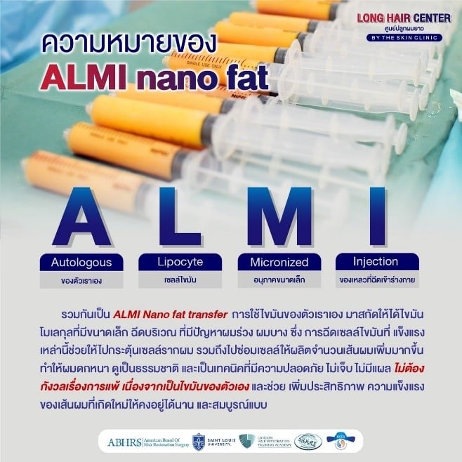 การกระตุ้นรากผมด้วยไขมันตัวเอง (ALMI Nano fat) ซึ่งเป็นเทคนิคเฉพาะที่