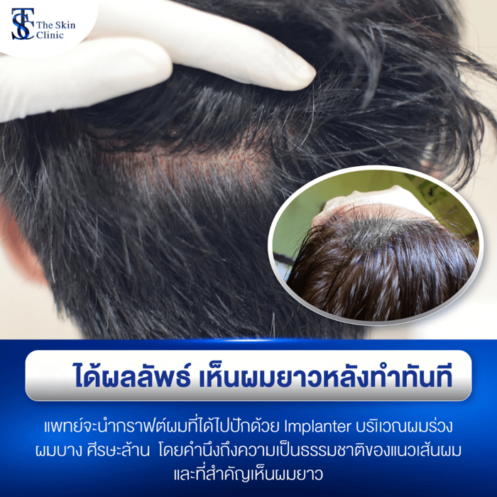 เดอะ สกิน คลินิกเท่านั้น เทคนิคนี้ได้รับการตีพิมพ์งานวิจัยว่าช่วยลดภาวะผมร่วงหลังปลูก และยังช่วยกระตุ้นรากผมให้หนาดกดำ และฟื้นฟูเส้นผมให้แข็งแรงได้อีกด้วย