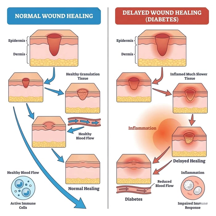ทำไมเบาหวานถึงทำให้แผลหายช้า
