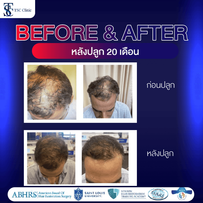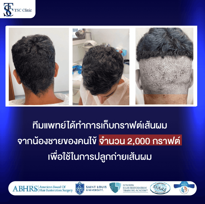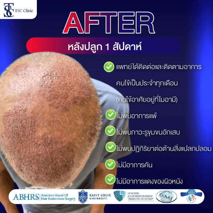 - คนไข้ผมยังไม่ร่วงจากบริเวณที่ปลูกถ่าย และโรคประจำตัวยังไม่ส่งผลกระทบต่อเส้นผมที่ปลูก