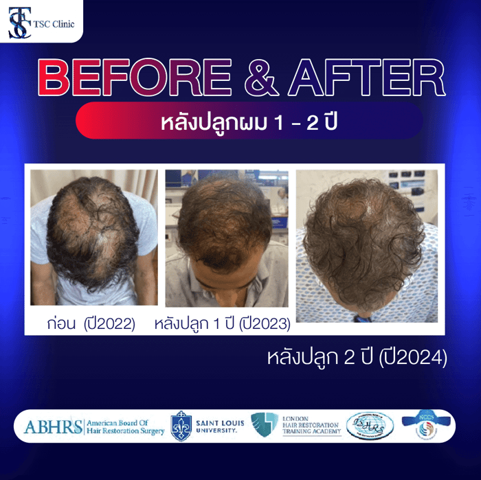 - หลังปลูกผม 1 – 2 ปี ผลลัพธ์ค่อนข้างดี