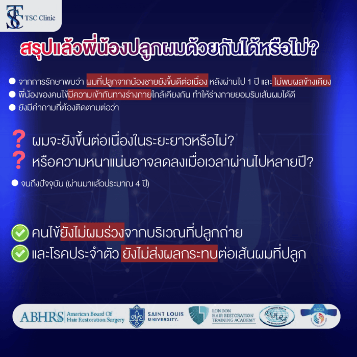 ใช้เส้นผมของพี่น้อง ปลูกผมได้หรือไม่?