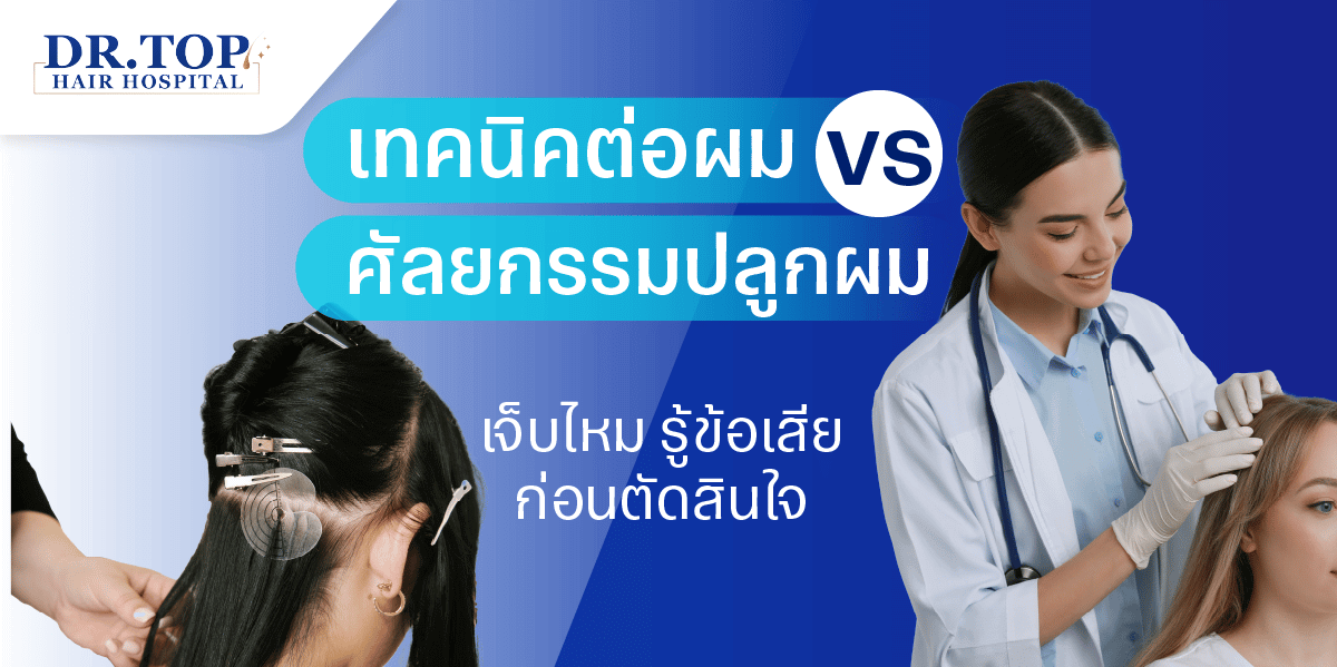 คำถามที่หลายคนสงสัยคือ ศัลยกรรมปลูกผม เจ็บไหม และปลูกผม พักฟื้นกี่วัน และการดูแลหลังทำยุ่งยากหรือเปล่า อีกทั้งยังมีข้อเปรียบเทียบระหว่างต่อผม และศัลยกรรมปลูกผม หรือสามารถใช้ยาปลูกผมแทนได้หรือไม่ บทความนี้จึงจะพาคุณทำความเข้าใจทั้งข้อดี ข้อเสีย วิธีพักฟื้น และการดูแล เพื่อให้ตัดสินใจได้ง่ายขึ้นว่าระหว่างการต่อผม หรือการศัลยกรรมปลูกผม แบบไหนคือคำตอบที่ใช่สำหรับคุณ