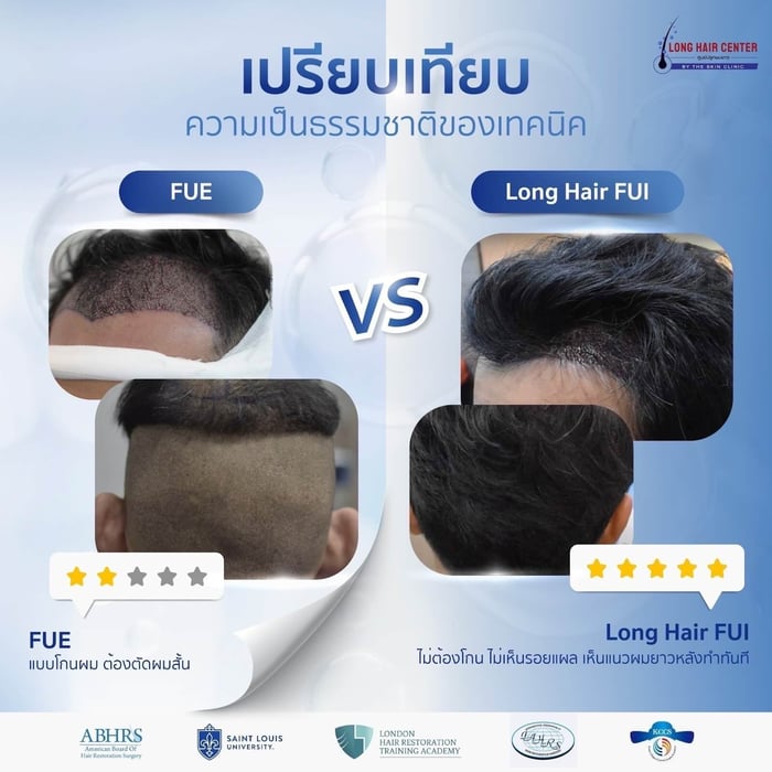 เทคนิคปลูกผม FUI (Long Hair FUI): ใช้เครื่องมือแบบพิเศษฝังรากผมเพื่อคุมทิศทางได้ดีกว่าเดิมโดยไม่ต้องโกนผมด้านหลัง ไม่เว้าแหว่งหลังทำ ไม่ต้องรอให้ผมด้านหลังยาว