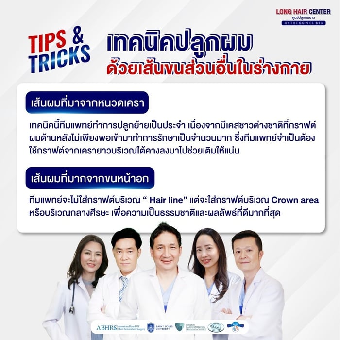 โดยใช้ขนจากบริเวณอื่นของร่างกาย เป็นอีกหนึ่งทางเลือกสำหรับผู้ที่มีปัญหาผมบาง ศีรษะล้าน โดยเฉพาะในกรณีที่ไม่มีเส้นผมบนศีรษะเพียงพอ