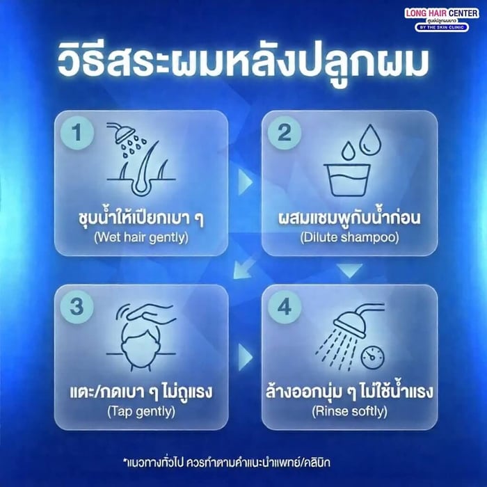 หลังปลูกผม แพทย์มักให้คำแนะนำเกี่ยวกับการสระผมในช่วงแรก
