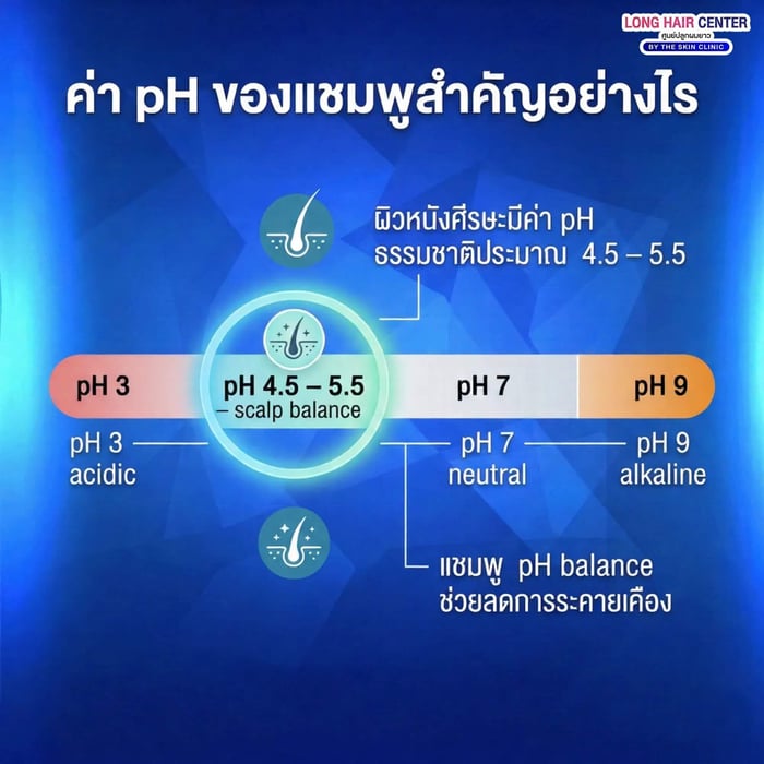 หนังศีรษะของคนเรามีค่า pH ตามธรรมชาติประมาณ 4.5–5.5 ซึ่งเรียกว่า acid mantle